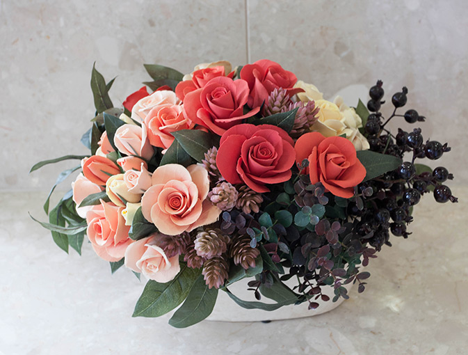 院長婦人手作りの四季折々のクレイフラワーが目を楽しませてくれます。